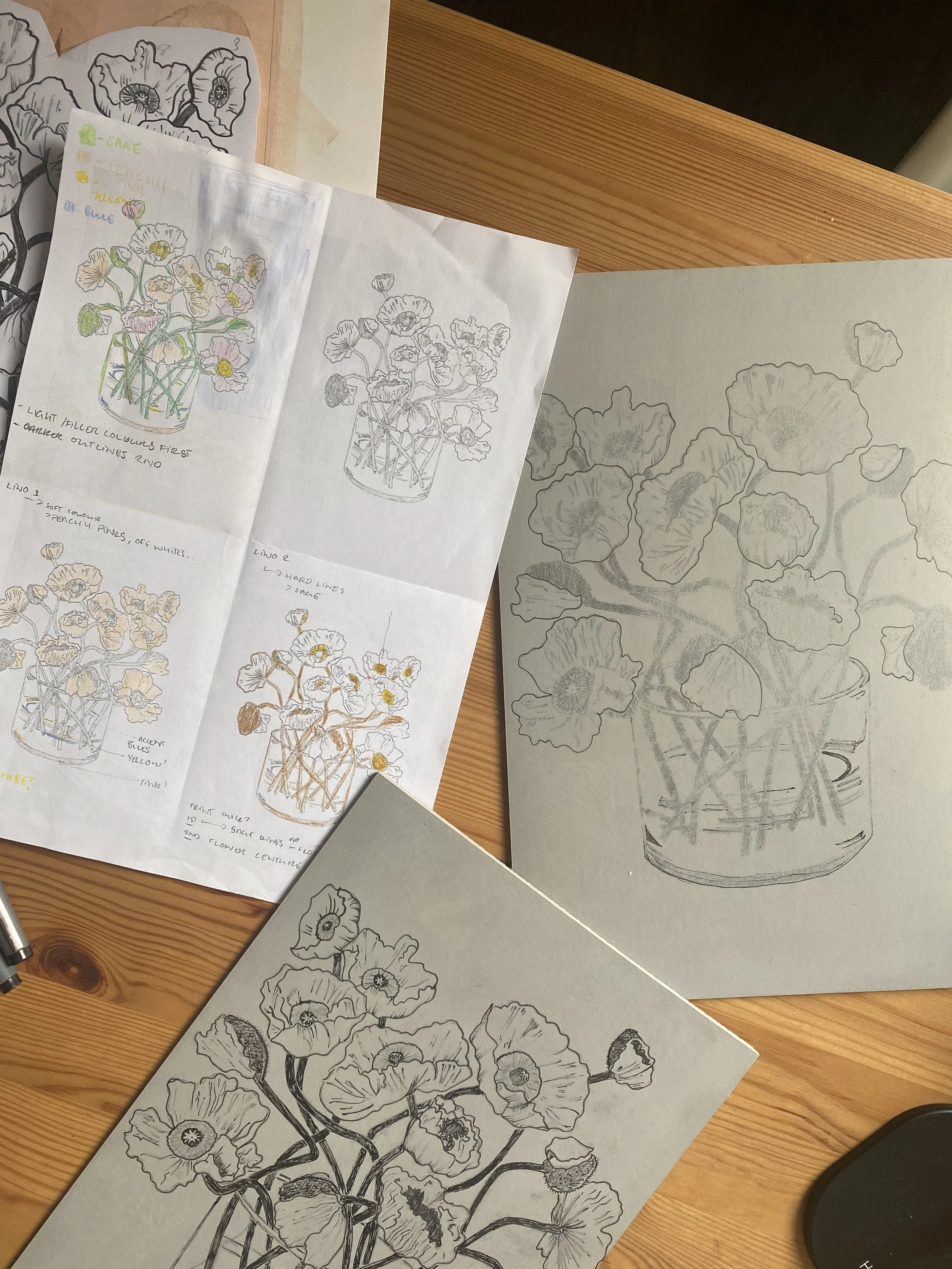 In 2020 Bex launched a small linocut studio brand, experimenting with natural tones and earthy palettes to bring a soft approach to traditional linocut printing, as well as a series of table scenes and London market scapes. You can view the collection here.