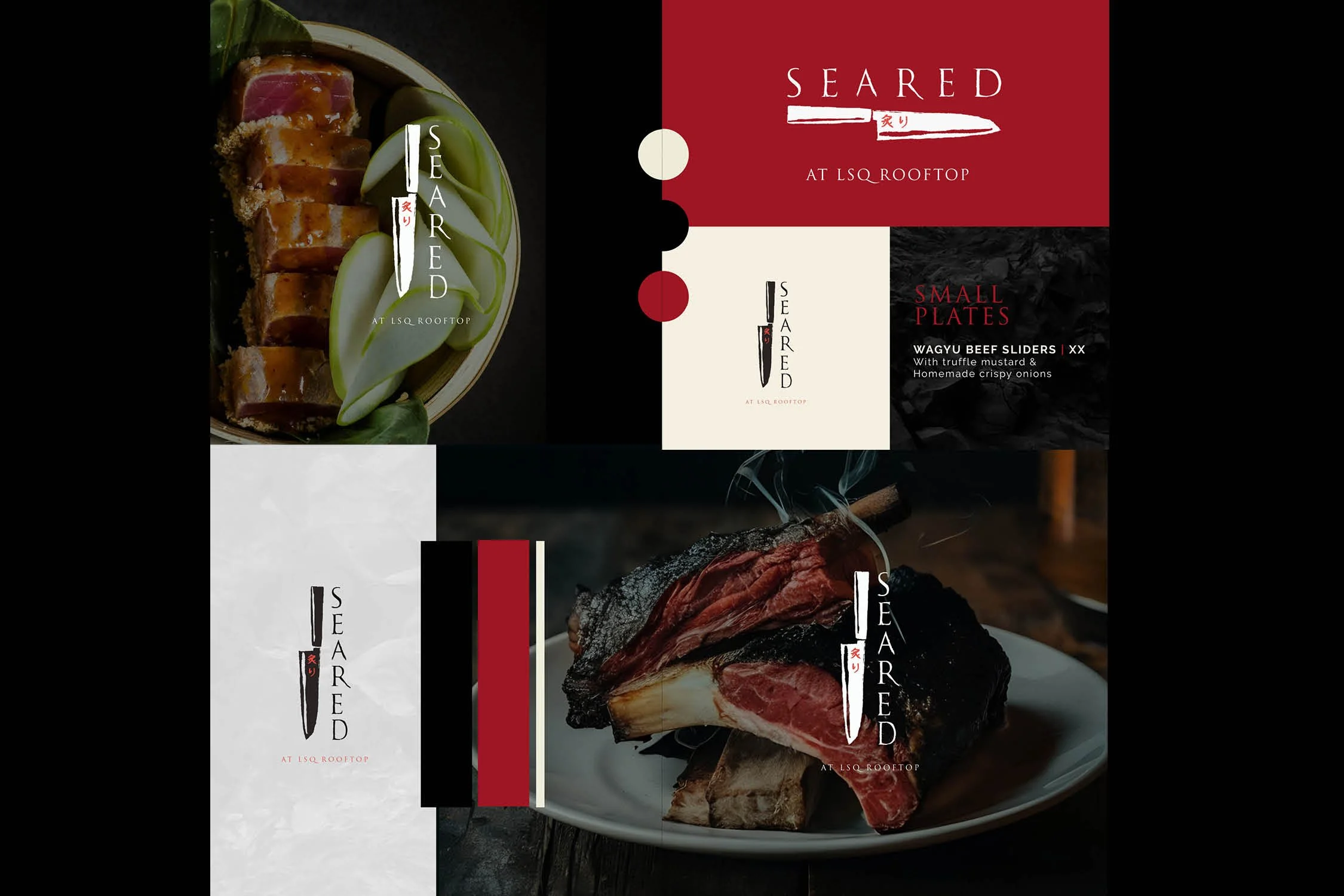 A brand identity concept for a Pan-Asian grill rooftop brand.